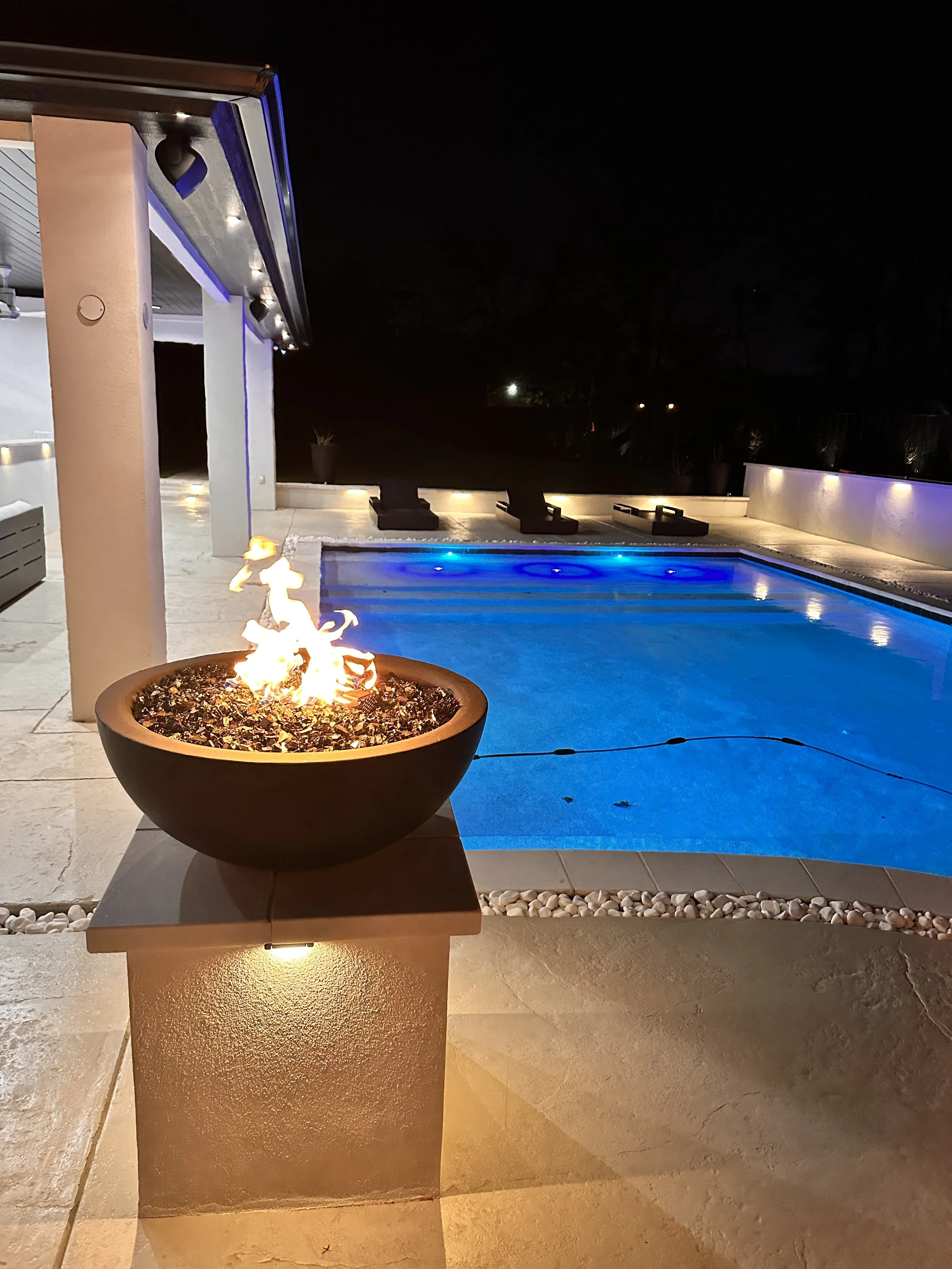 In Fort Worth and Benbrook, where hot summers lead into breezy evenings, a fire pit near the pool extends your outdoor season. A landscape designer will carefully assess the layout, wind direction, and spacing to ensure the fire pit enhances—not disrupts—the flow of your space. Fire pits are often placed at the edge of the pool deck or in a nearby seating area, providing warmth without making the poolside experience uncomfortable.